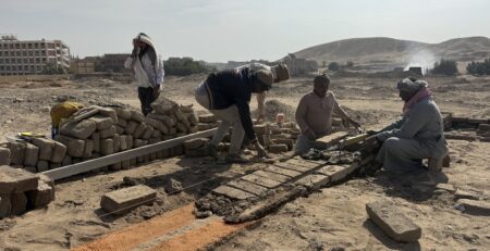 Throughout the course of our work this season, we also hope to begin salvage and conservation efforts at the house, to better protect it from modern disturbance and encroachment from the nearby village. After archaeological investigation and documentation, we plan to cap the remaining ancient mudbrick walls with modern mudbrick. This is done in order to stabilize the existing architecture, but also to help delineate the area as an archaeological site for the locals and future tourists who would visit the site. Similar conservation efforts were done in 2019 at House D, directly north of House E, and this effort proved successful in preserving the structure and surrounding area from modern interventions (Figure 3).