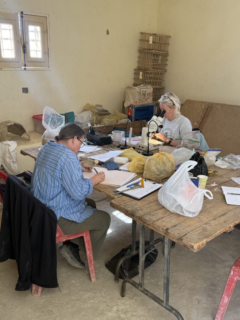 Botanical analysis is now underway in the on-site magazine, where Claire Malleson and Jayme Reichart are examining plant remains, especially samples recovered from earlier work at the South Palace. This work will form a chapter in our forthcoming preliminary report on the monument due to be published in 2026. Gillian Pyke also joined the team this week and began studying pottery and other material culture collected during previous seasons dating to the Late Antique Period, bringing a longue-durée perspective to the history of Deir el-Ballas.