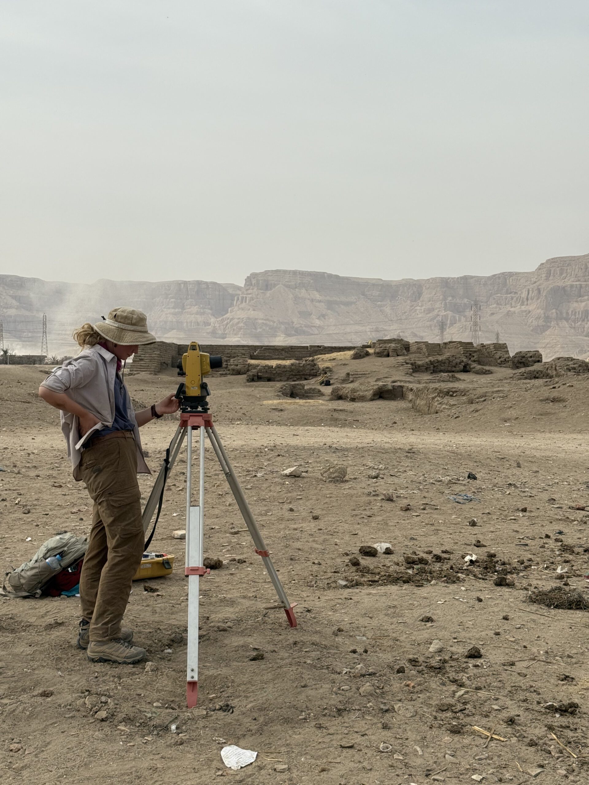 Teams were spread out across the site, with Victoria Shakespeare and Waleed Hawatky finishing work in their trench within the North Palace Enclosure Wall. Alongside this work, Ben Johnson, and Sarah Sowerby continued expanding the site grid and recording new survey points, extending accurate mapping across the settlement and palace areas. Ben Johnson and Sarah Sowerby took the lead to prepare new areas for survey at the North Hill Settlement at the start of the week, an area of the site that has not been investigated since Albert Lythgoe excavated there in 1900-1901.